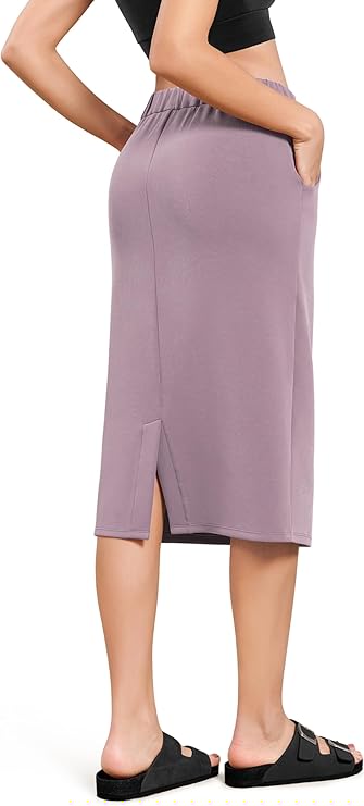 Women's Modal Soft Midi Skirt with Pockets High Waist Back Slit Casual Pencil Skirts