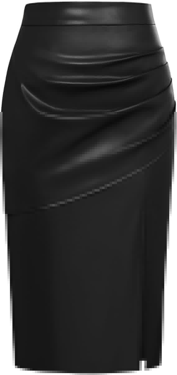 2024 Women's Faux Leather Skirts Front Slit Ruched Tummy Control High Waist Bodycon Midi Pencil Skirt S-XXL