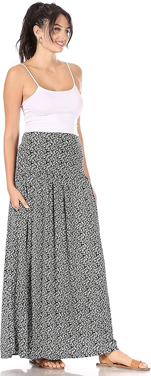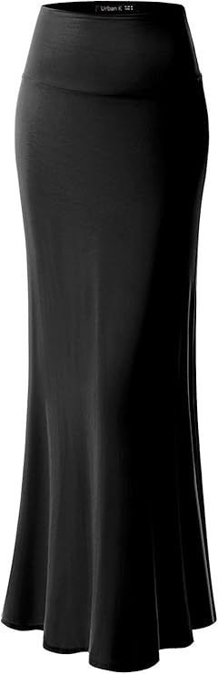 Womens Basic Foldable High Waist Regular and Plus Size Maxi Skirts
