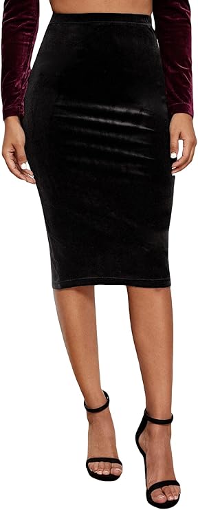 Women's High Waist Split Hem Velvet Bodycon Pencil Midi Skirt
