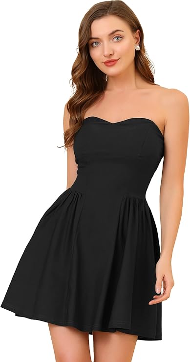 Women's Sexy Strapless Party Dress Sweetheart Neck Off Shoulder Sleeveless Mini Dress