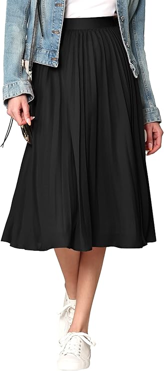 Women's High Elastic Waist Pleated Mid A-Line Swing Skirt